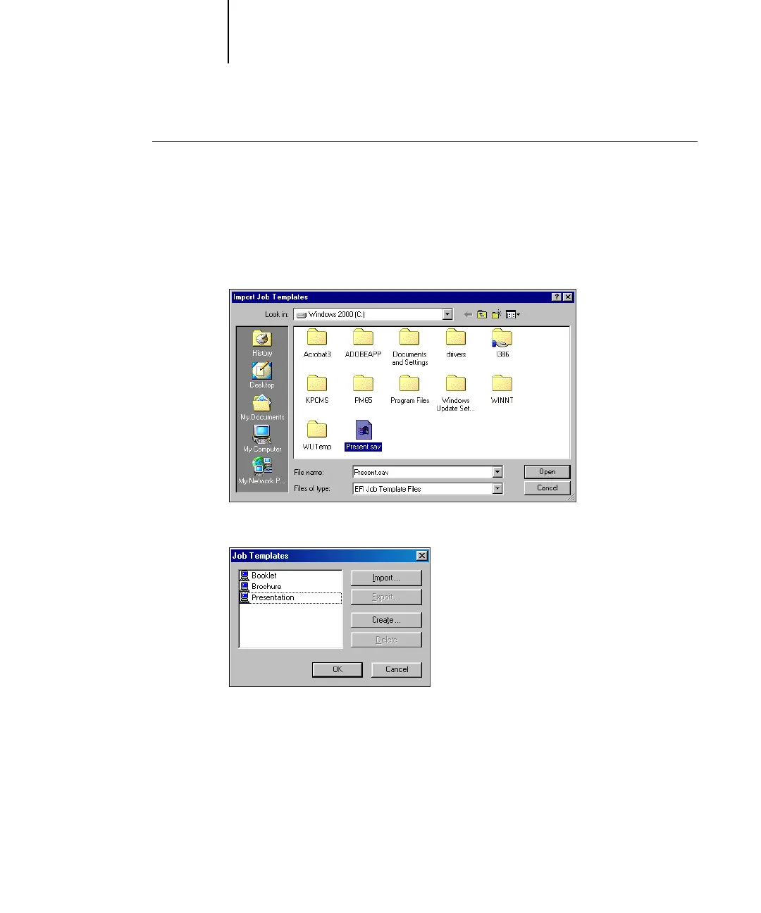(file name) was imported, but it appears in the Job Templates menu as Presentation