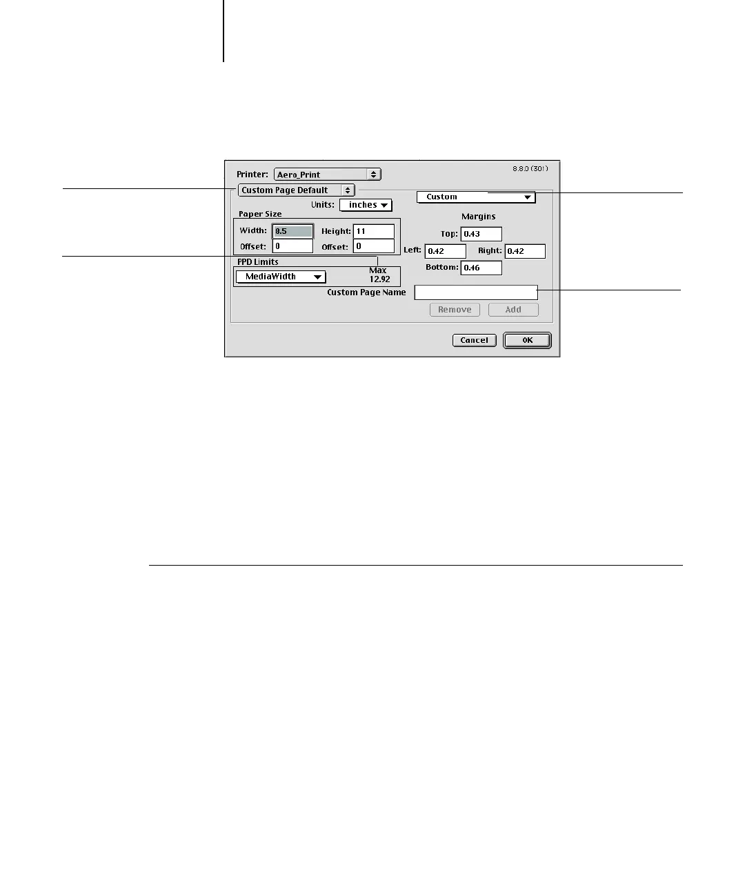 6. To save this custom page size, enter a name and click Add.