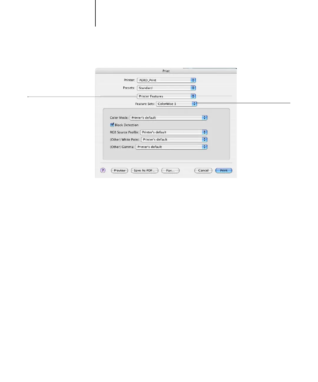 8. Choose Printer Features and specify the appropriate settings for your job.