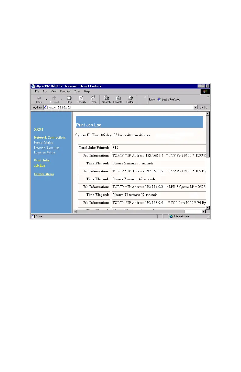 This displays the Print Job Log for the selected printer: