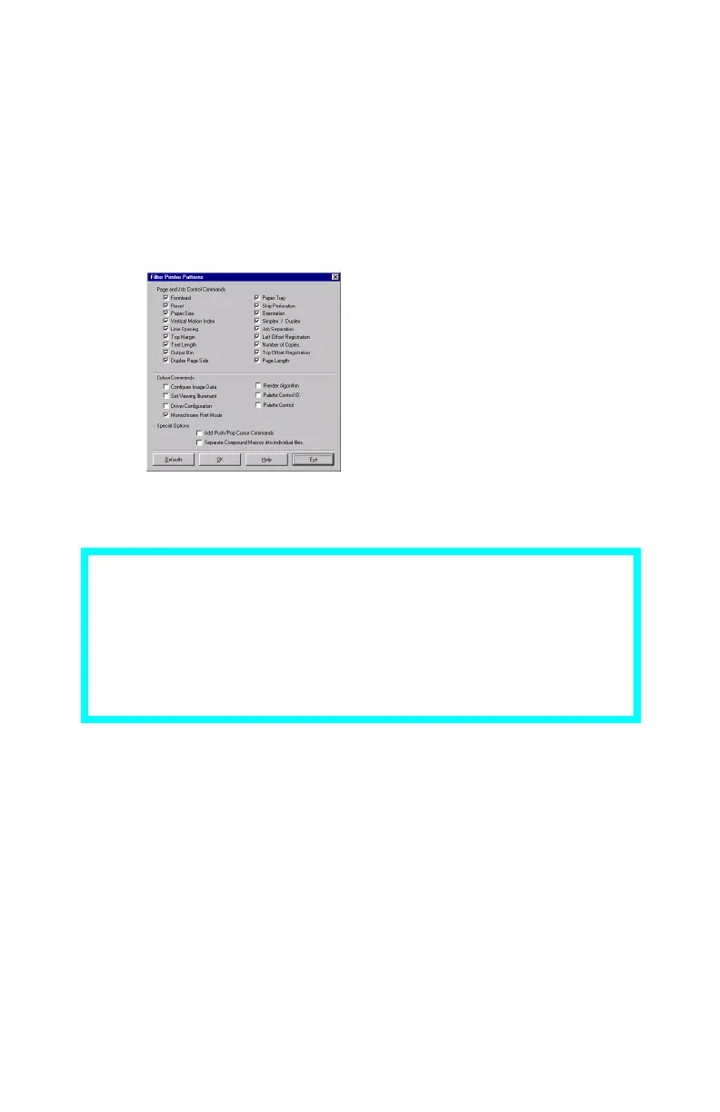 The Filter Printer Patterns dialog box appears.