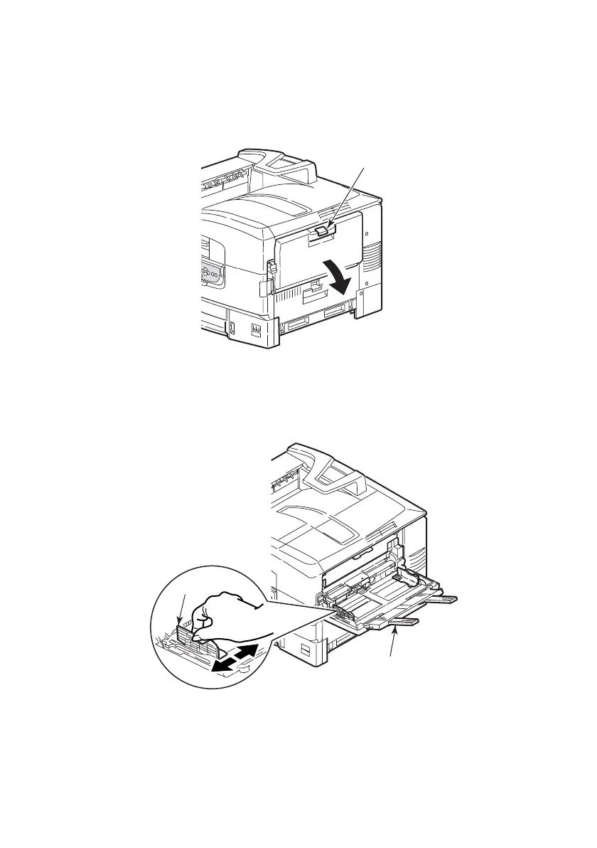 1. Pressione a alça (1) e abra a bandeja multipropósito.