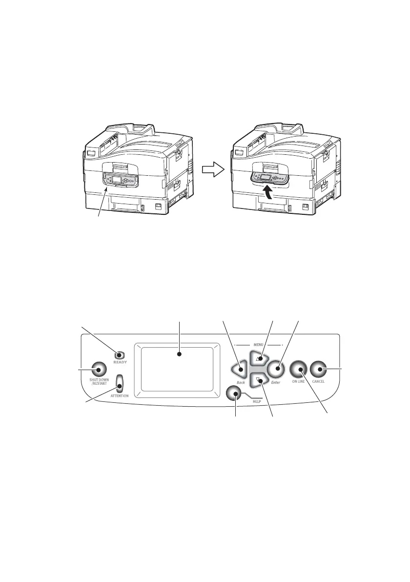 O painel de controle pode ser levantado de sua posição inicial (1)