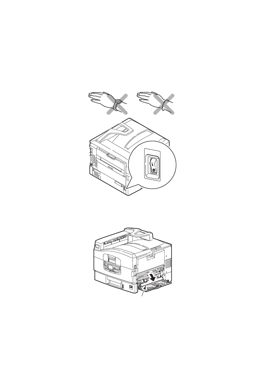 2. Abra a tampa lateral da Bandeja 1 e puxe a bandeja guia