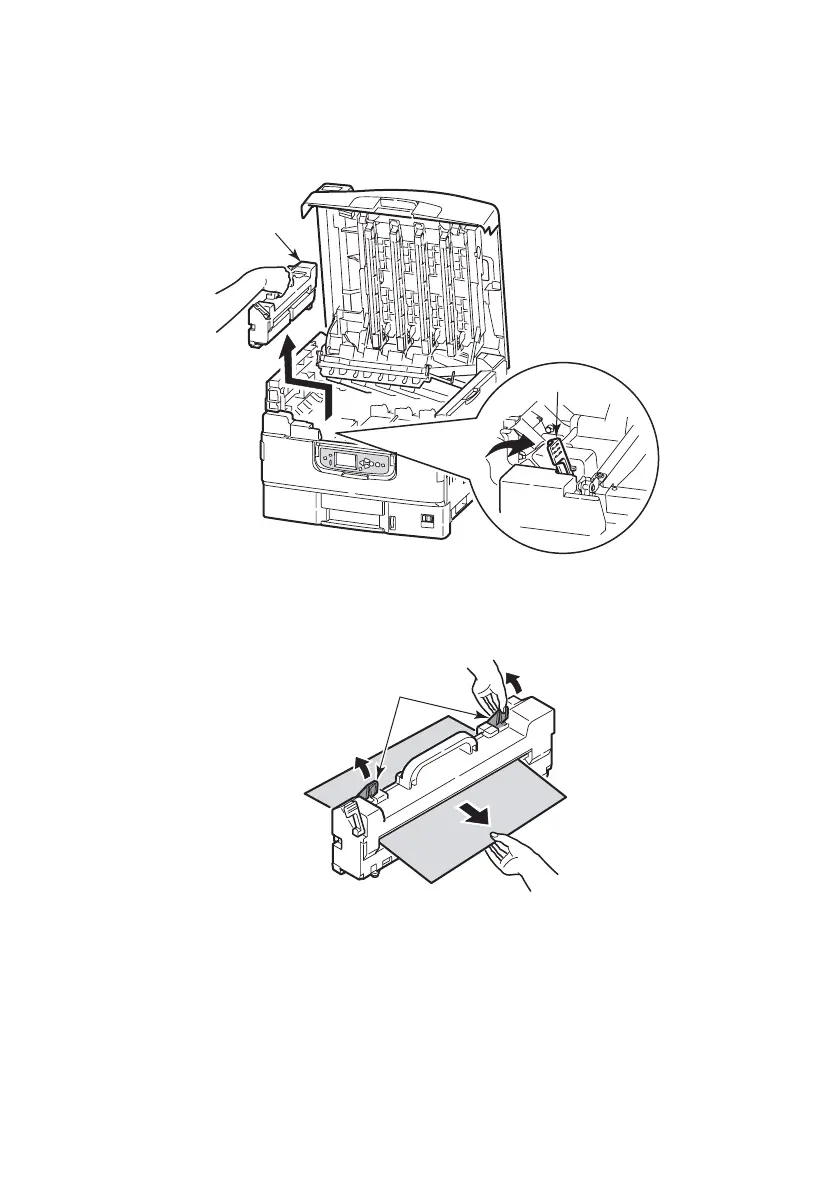 Segurando a unidade do fusor (4) pela alça, levante-a da