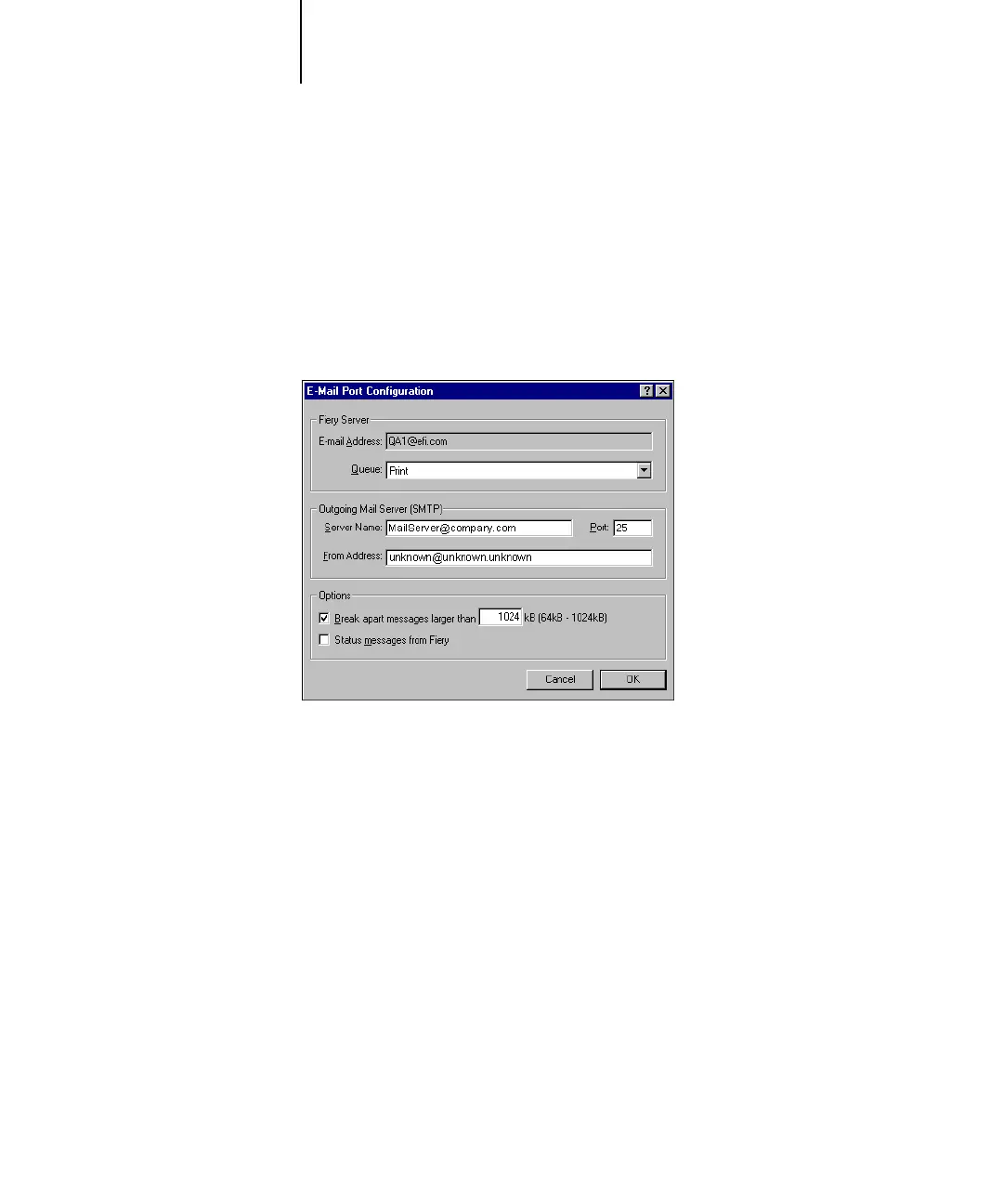 Outgoing Mail Server—Enter the name or IP address of the SMTP server for the port
