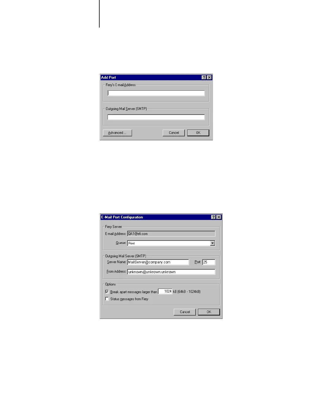 The E-Mail Port Configuration dialog box appears.