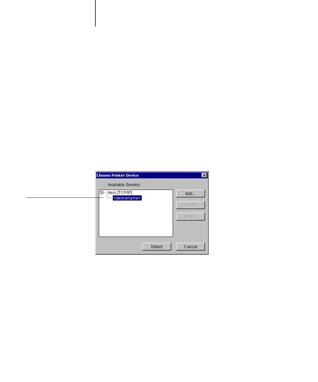 6. With the device name selected in the list of Available Servers, click Select to begin