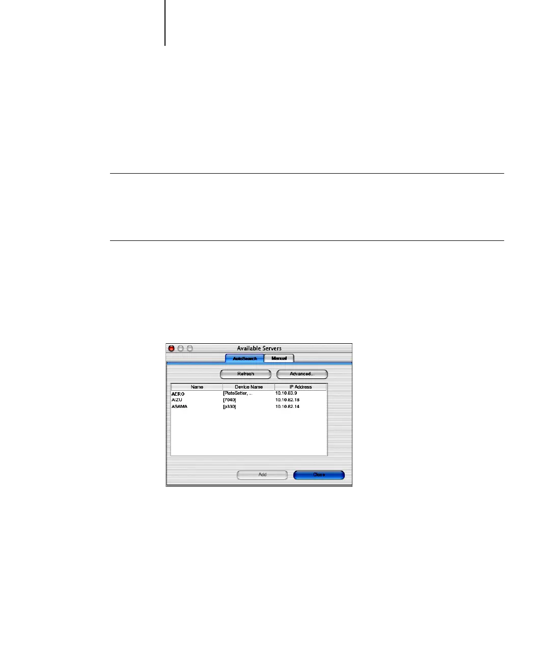 The Available Servers dialog box is displayed. All servers found in the local subnet