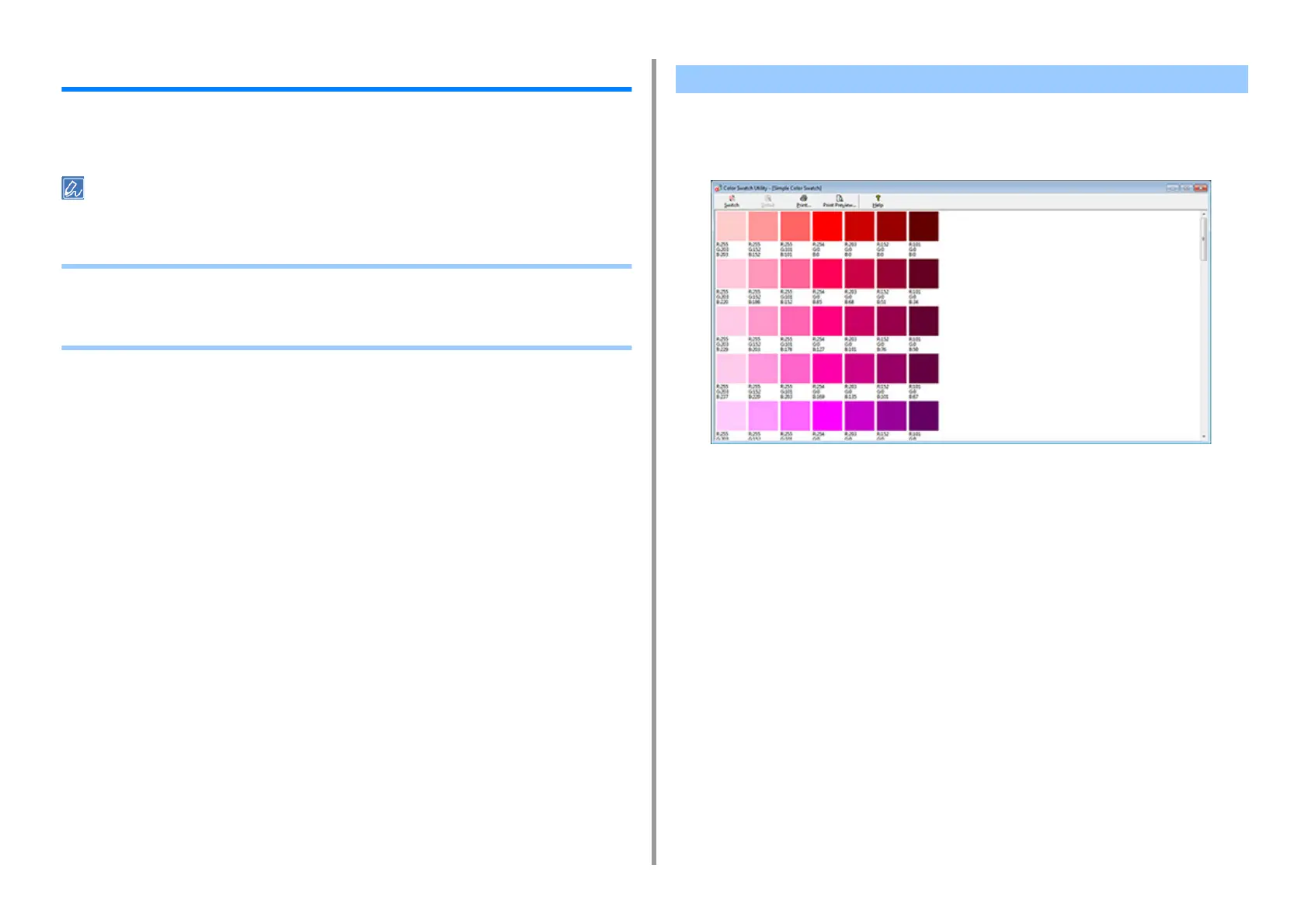 This section explains the Color Swatch Utility. You can print the RGB color swatch using the
