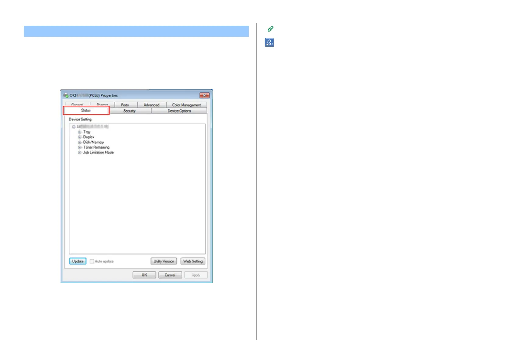 Select the [Status] tab.