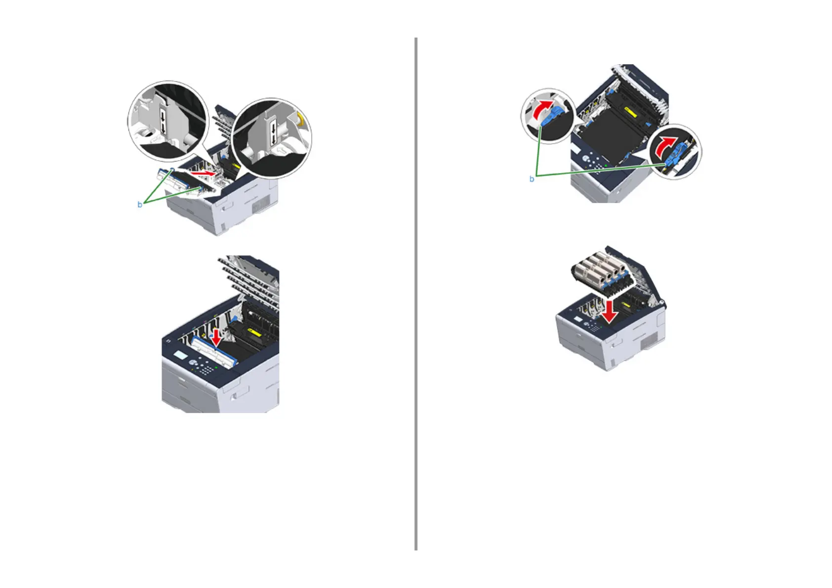 Turn the lock levers (b) on the both sides of the belt unit backward.