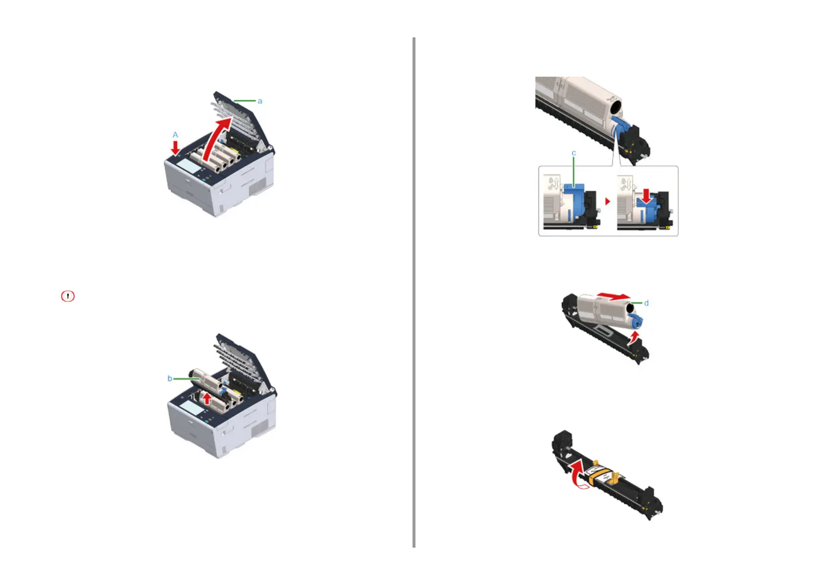 Lift the toner cartridge (d) from the right side, and remove it from the image