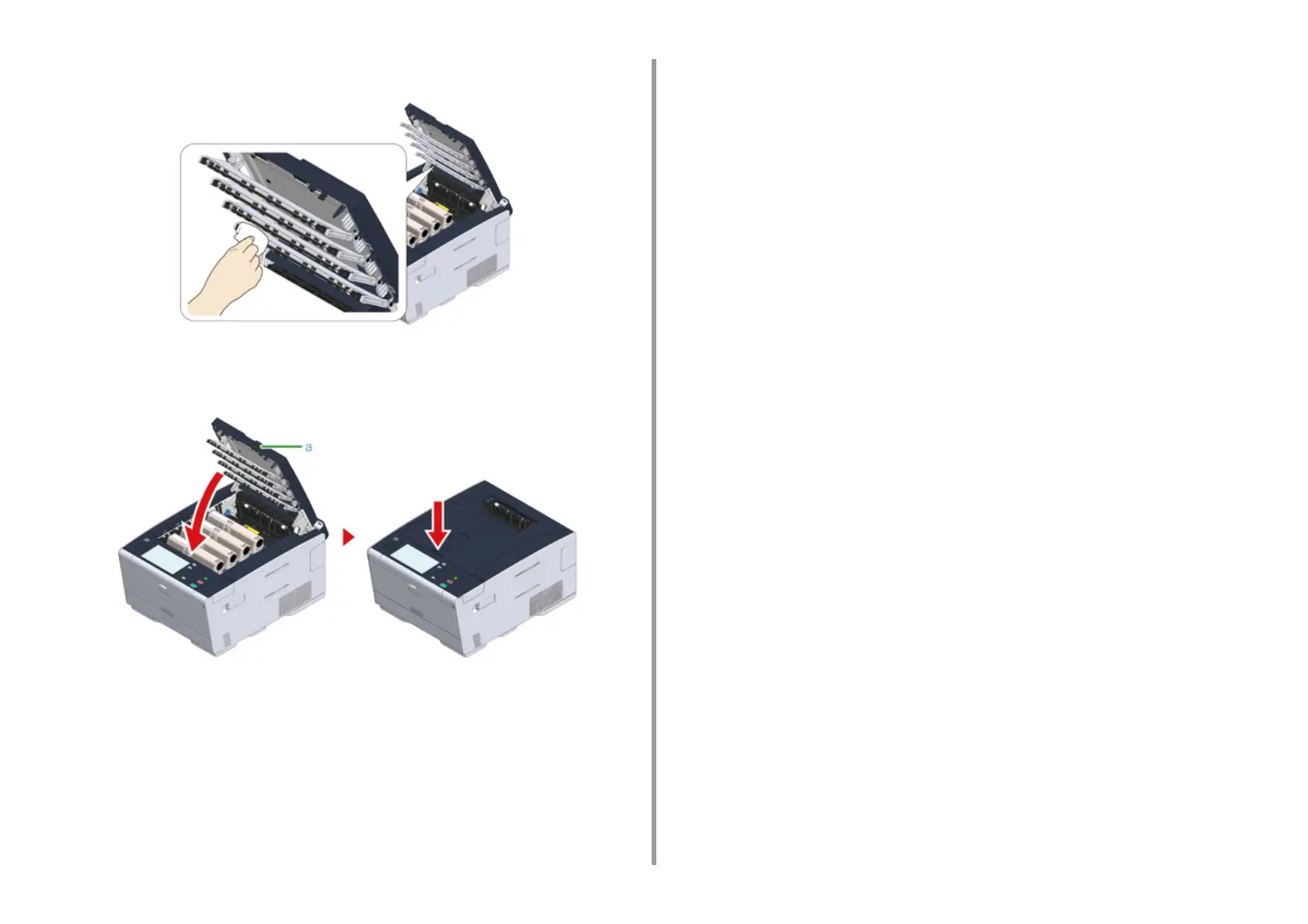 Close the output tray (a) slowly and push the center of the output tray for