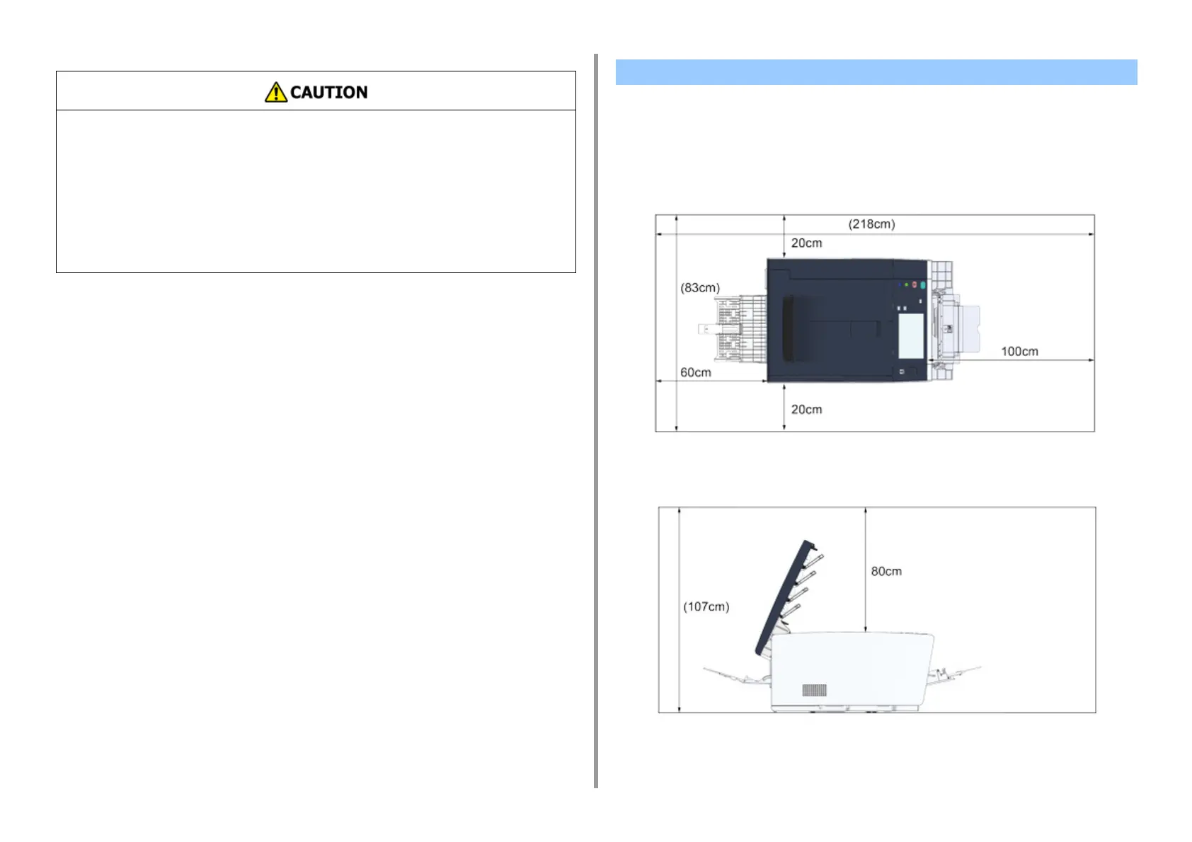 Allow for enough room around the machine as shown in the following figures.