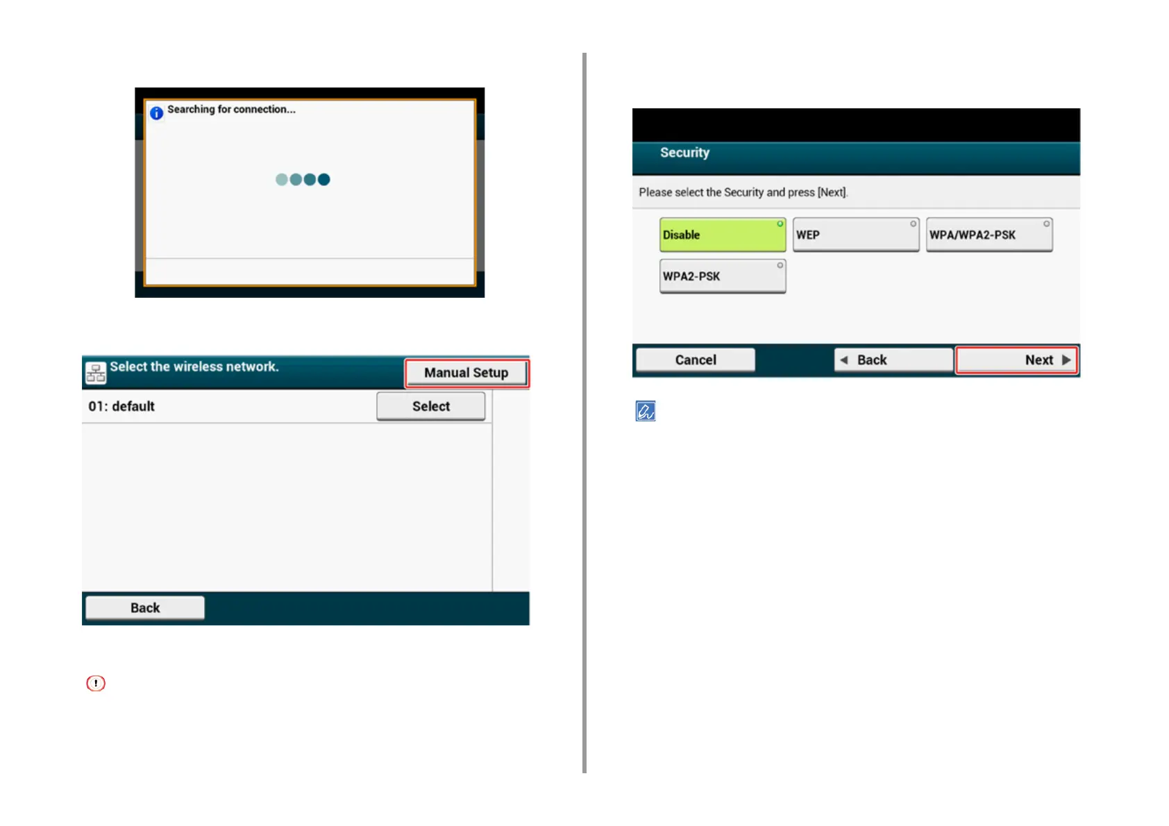 The machine starts searching for wireless LAN access points. Wait for a while.