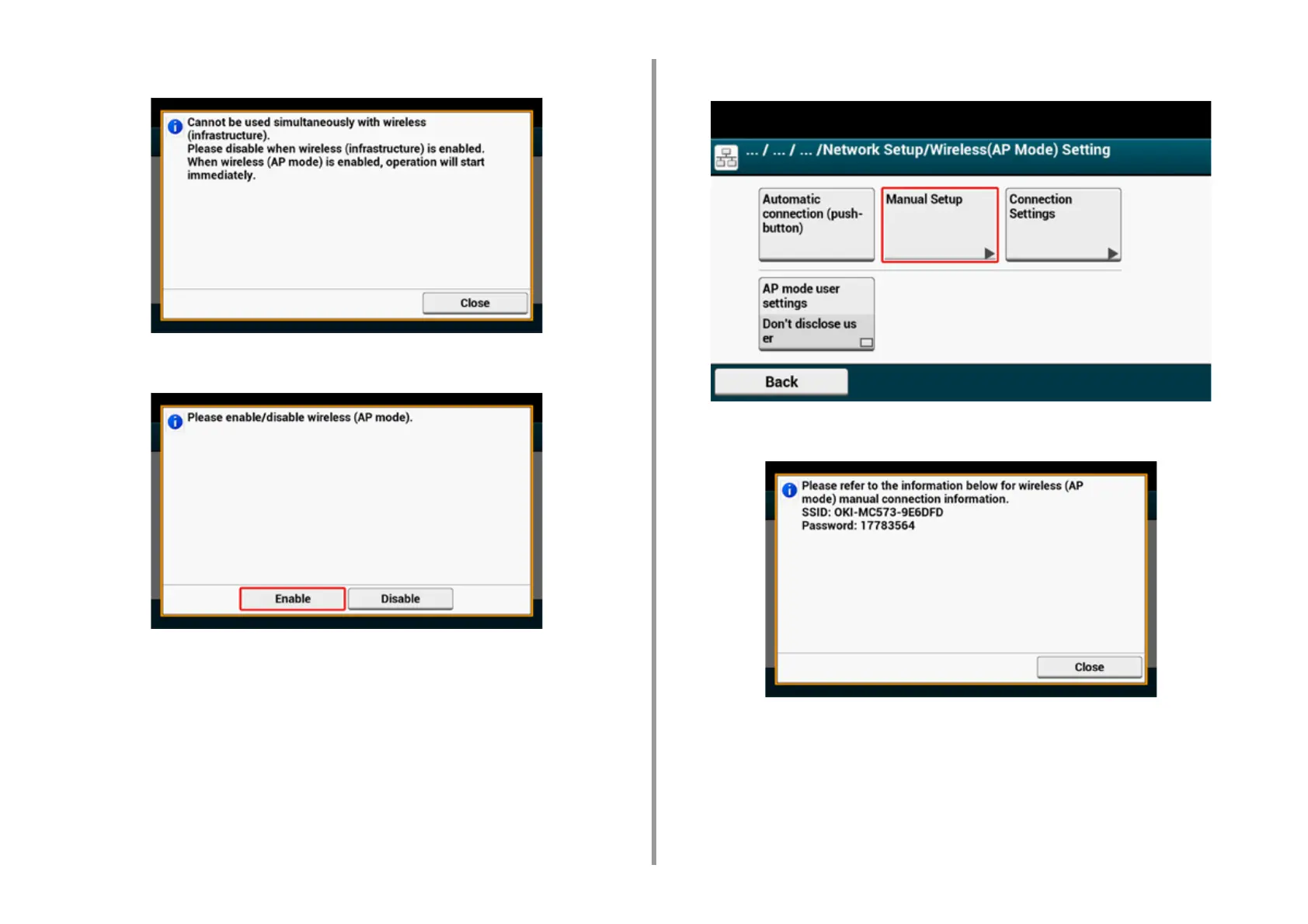 Enter the [SSID] and [Password] that you checked in step 10 to connect the