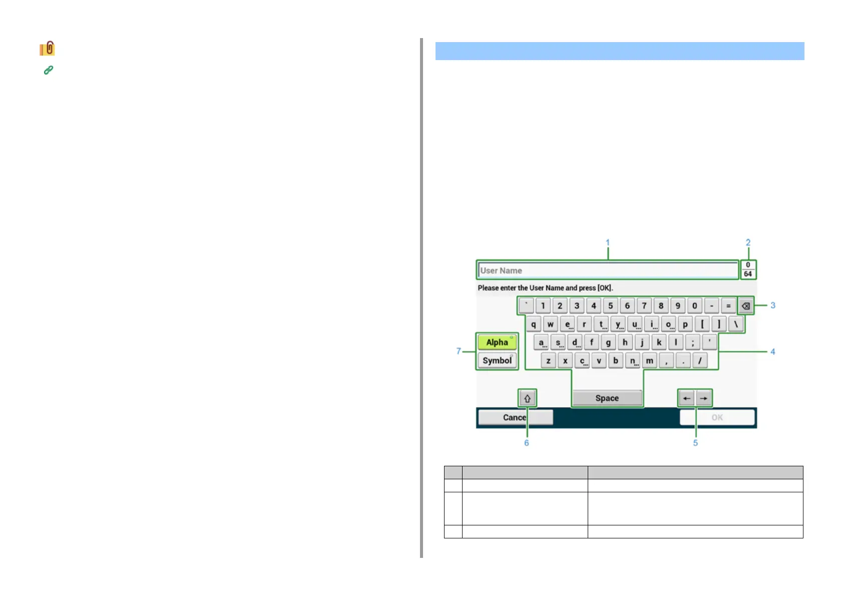 1 Text entry field Displays the entered characters.