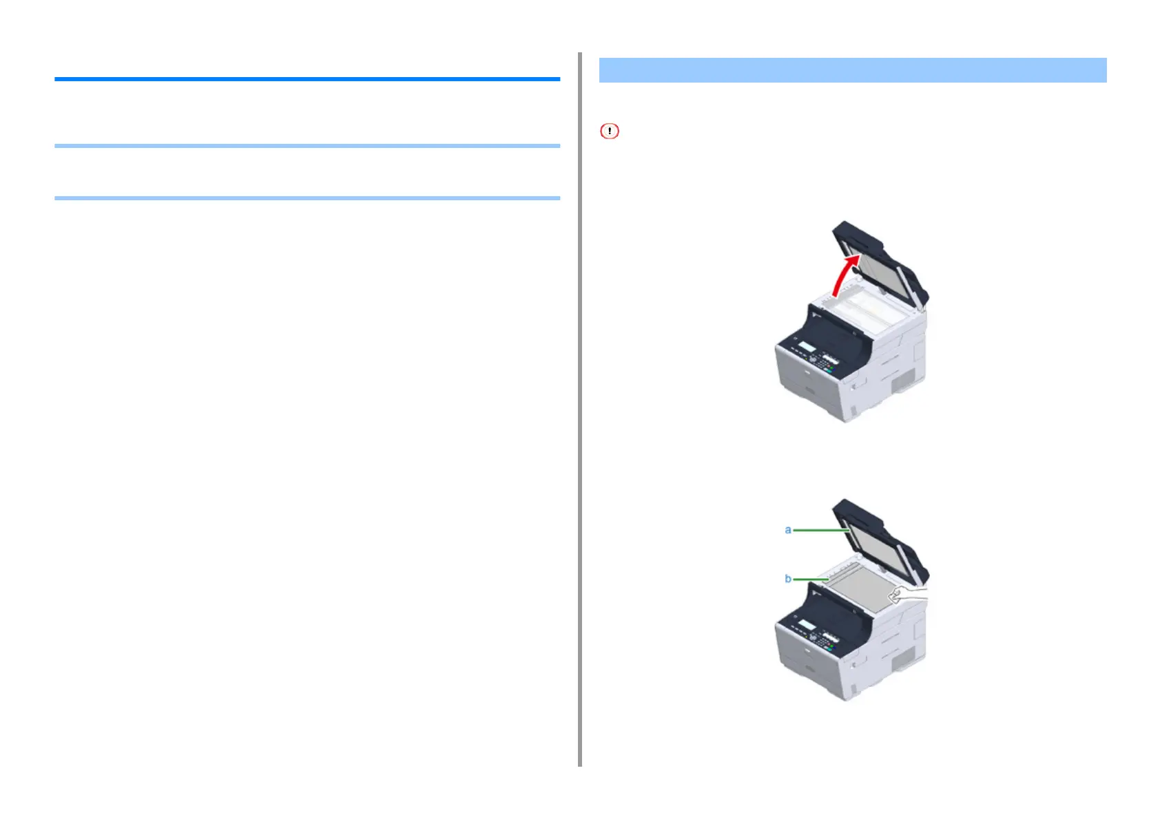 Wipe lightly the document holding pad (a) and document glass (b) with a soft