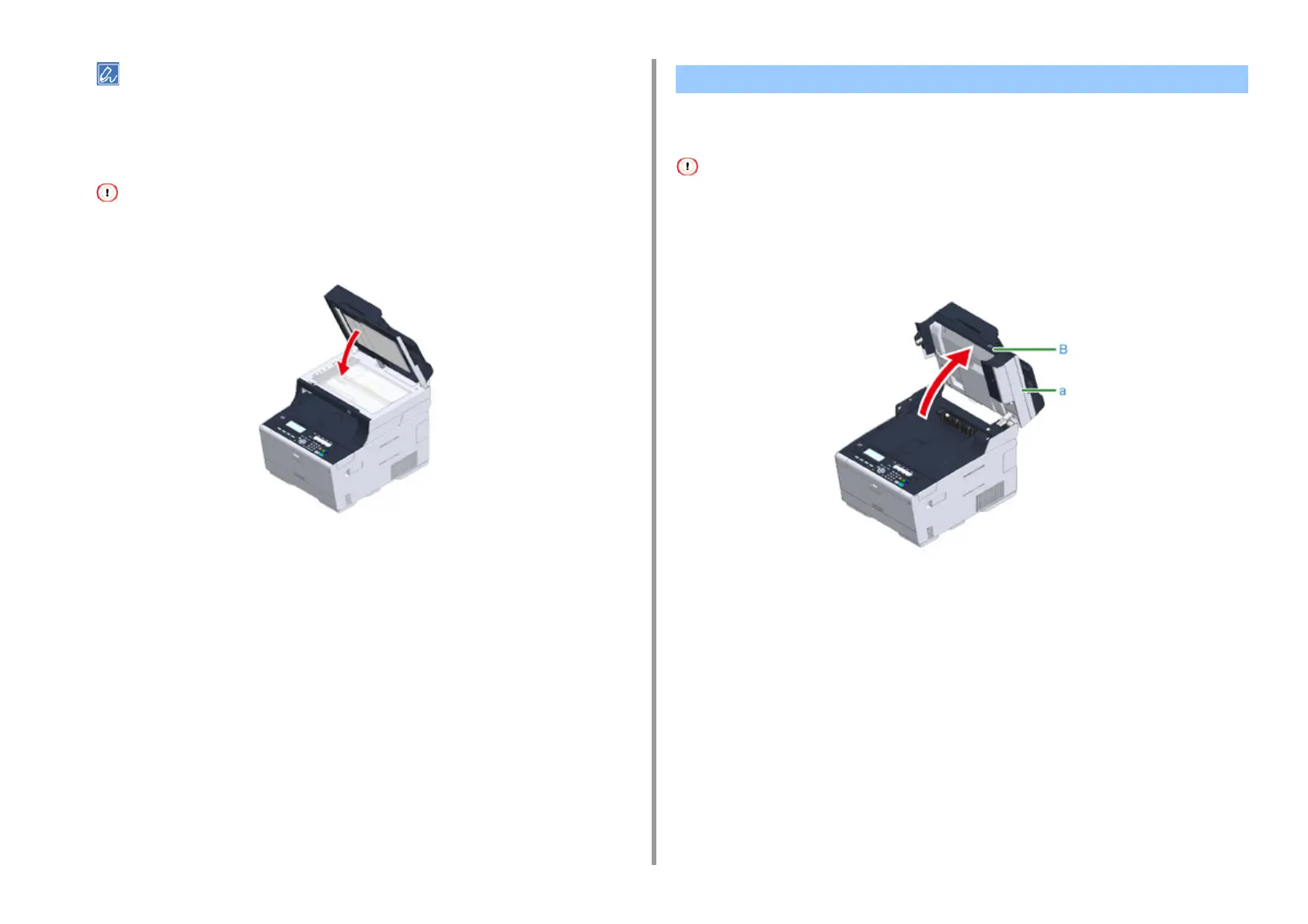 Hold the handle (B) and open the scanner unit (a) completely.