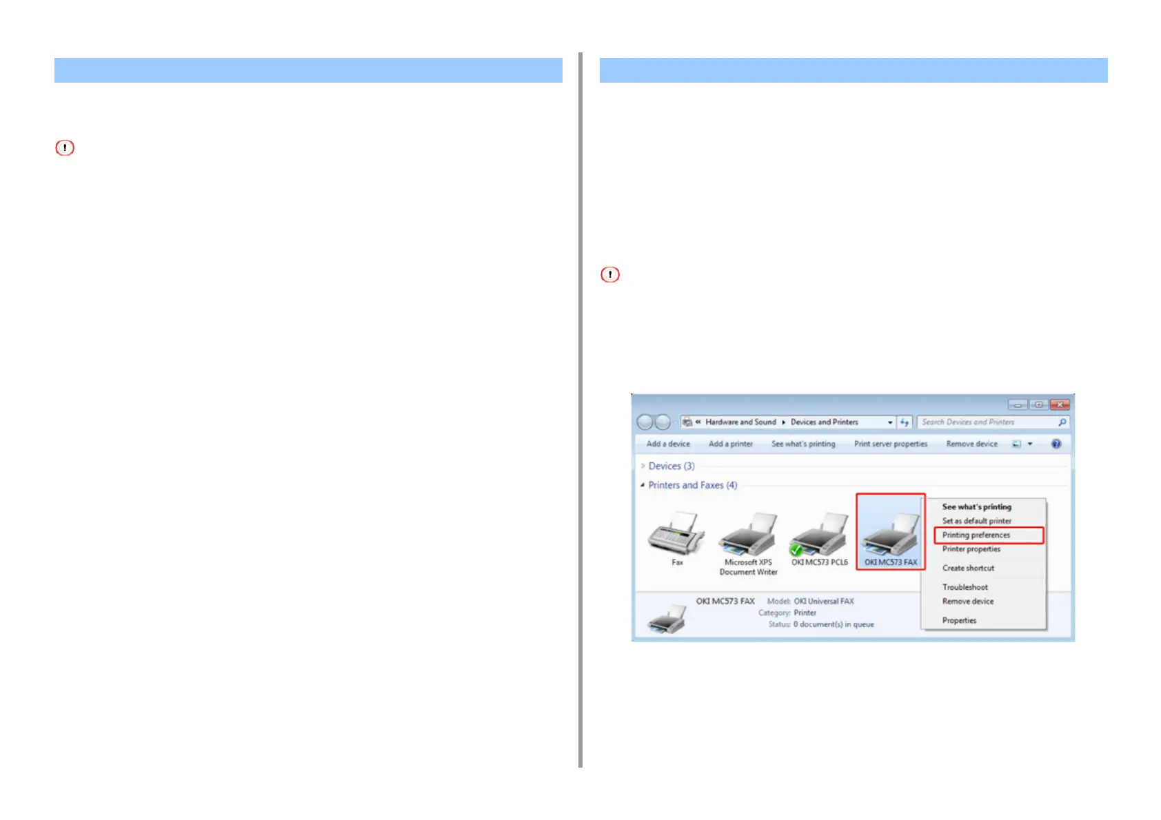 Right-click the OKI MC573 FAX icon, and then select [Printing preferences].