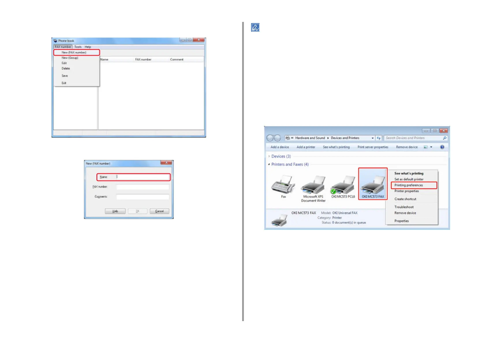 Right-click the OKI MC573 FAX icon, and then select [Printing preferences].