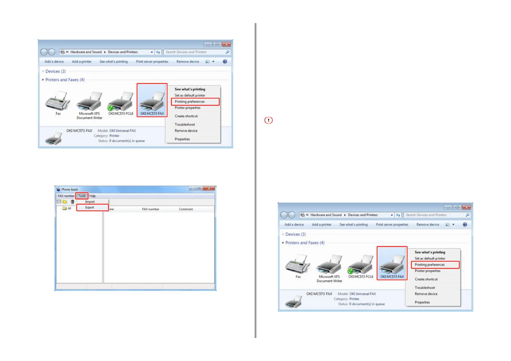 Right-click the OKI MC573 FAX icon, and then select [Printing preferences].