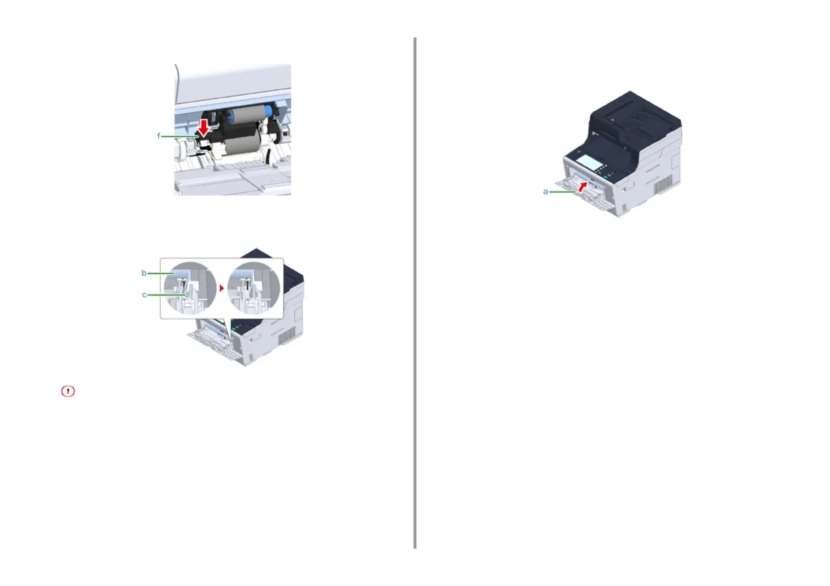 Closing the MP tray without putting the tab back in place may crack the paper set cover. Be sure to put it back in