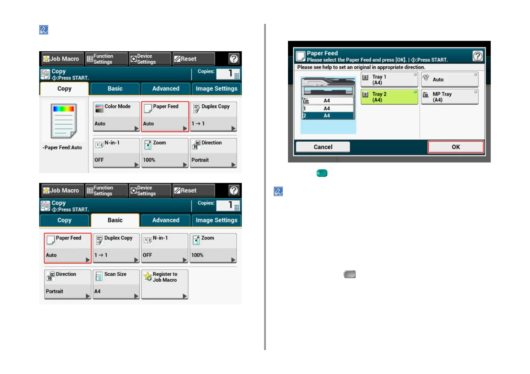 Press [Paper Feed] on the [Copy] or [Basic] tab.