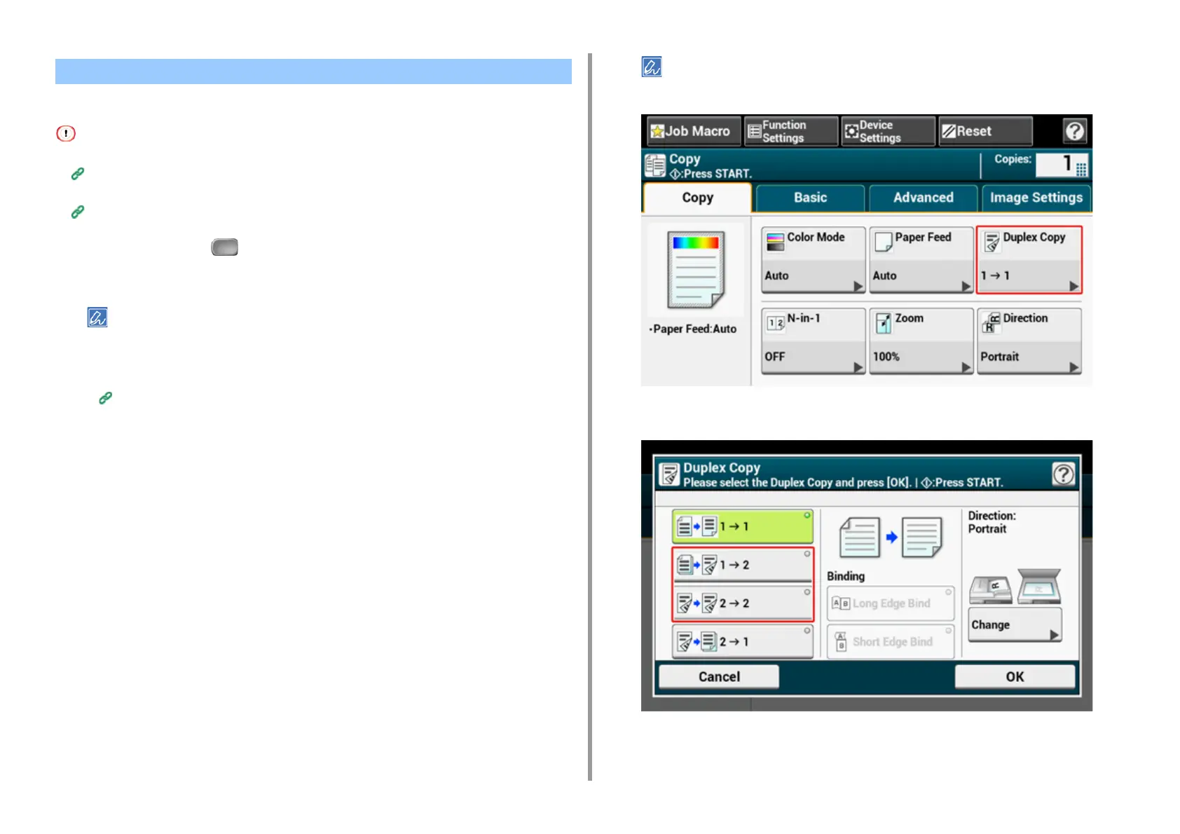 Press [Duplex Copy] on the [Copy] or [Basic] tab.