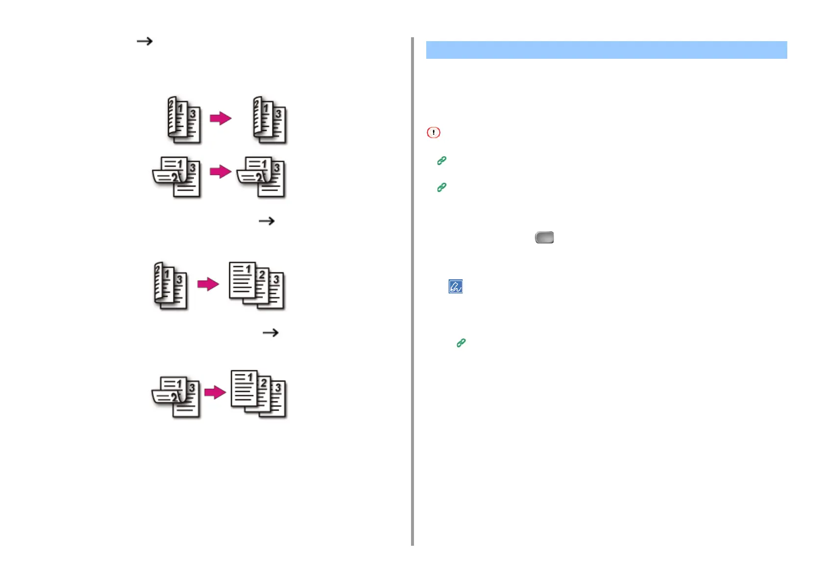 • Duplex documents Duplex copies with the long edge bound or the short