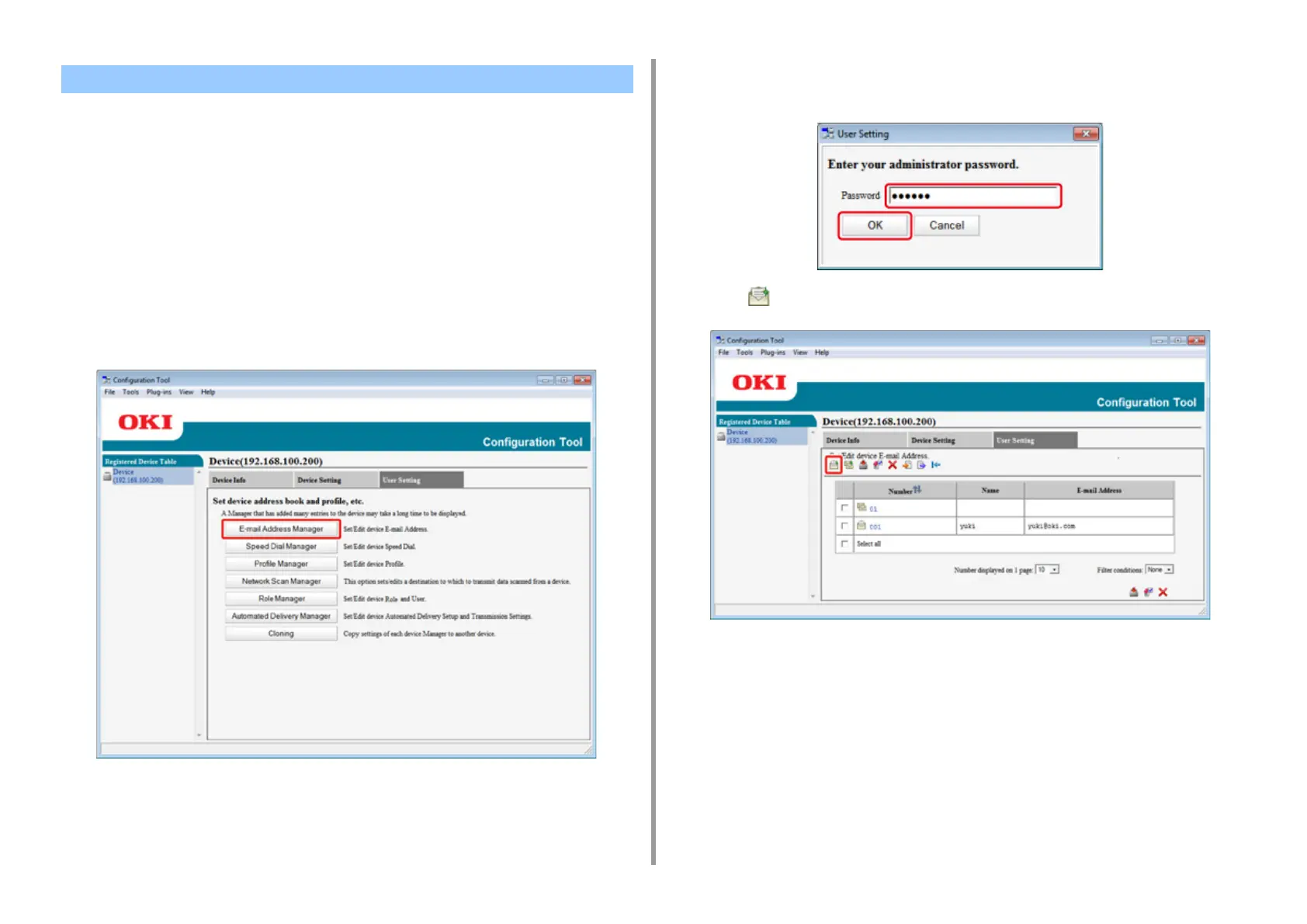 Registering an E-mail Address (Configuration Tool)