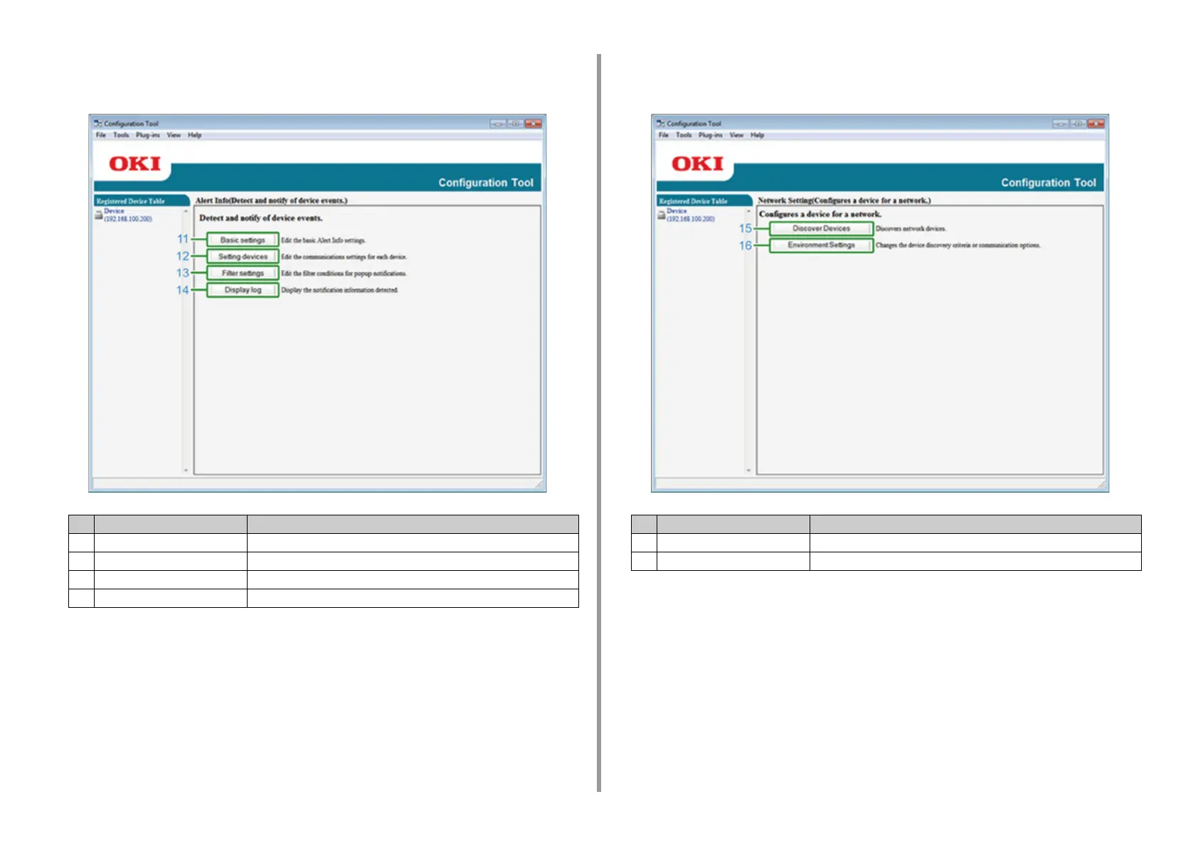 16 Environment Settings Changes the device discovery criteria or communication options.