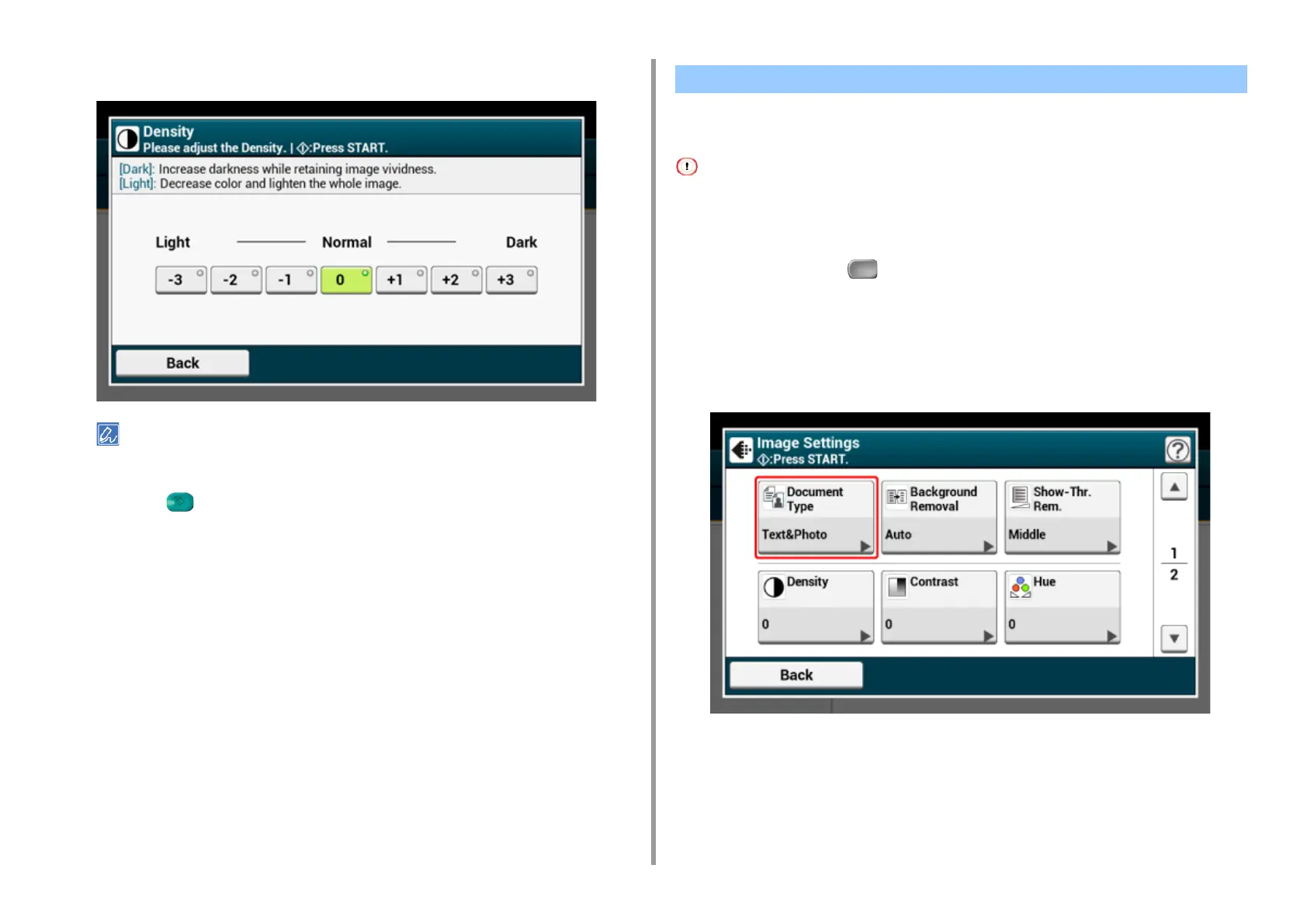 [0] is the standard value. To increase the density, select [+1], [+2], or [+3] (darkest). To decrease the density,