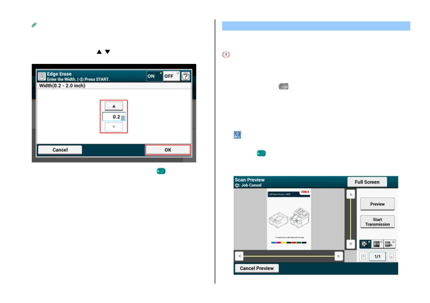 • The image previewed on the display does not completely match the printout. Use the function to check the content