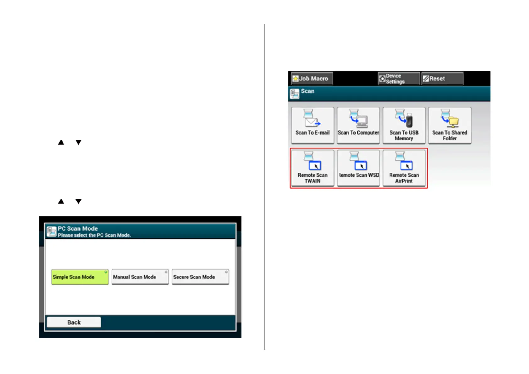 If [Manual Scan Mode] or [Secure Scan Mode] is selected, remote scan buttons