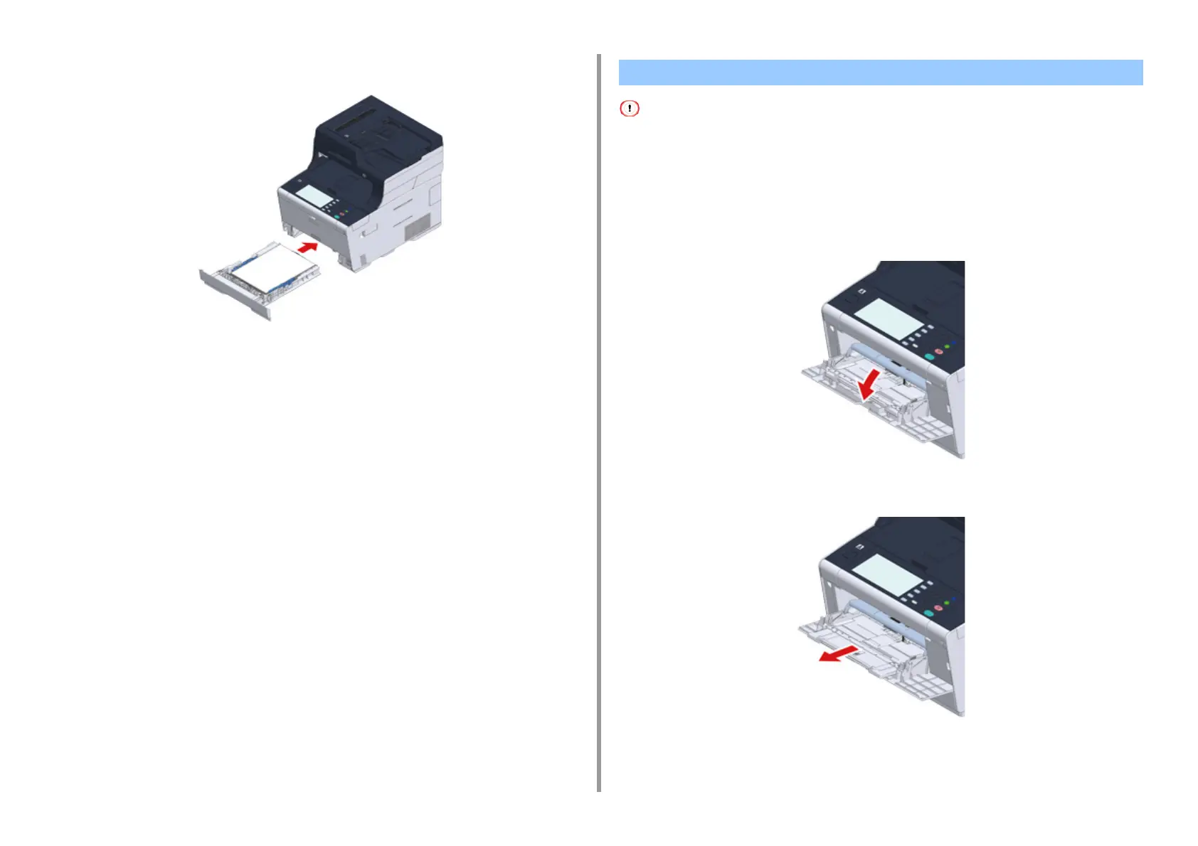• Do not press down the paper or hold the paper to pull while printing on the paper fed from the MP tray. To stop