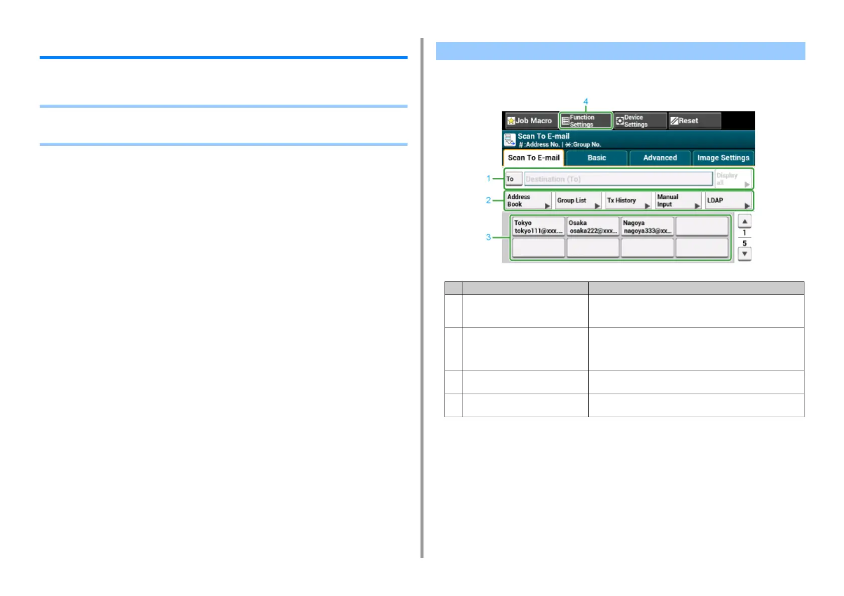 1 Destination area Select a destination e-mail address. The selected e-mail address