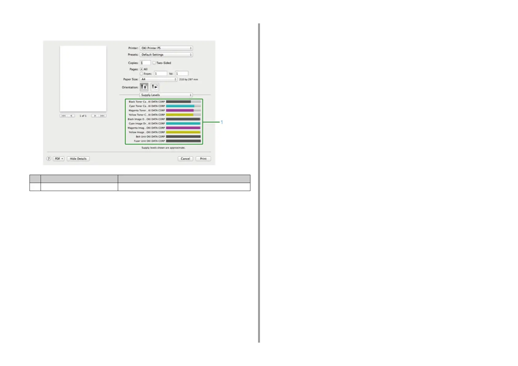 1 Consumables Displays the remaining amount of consumables.