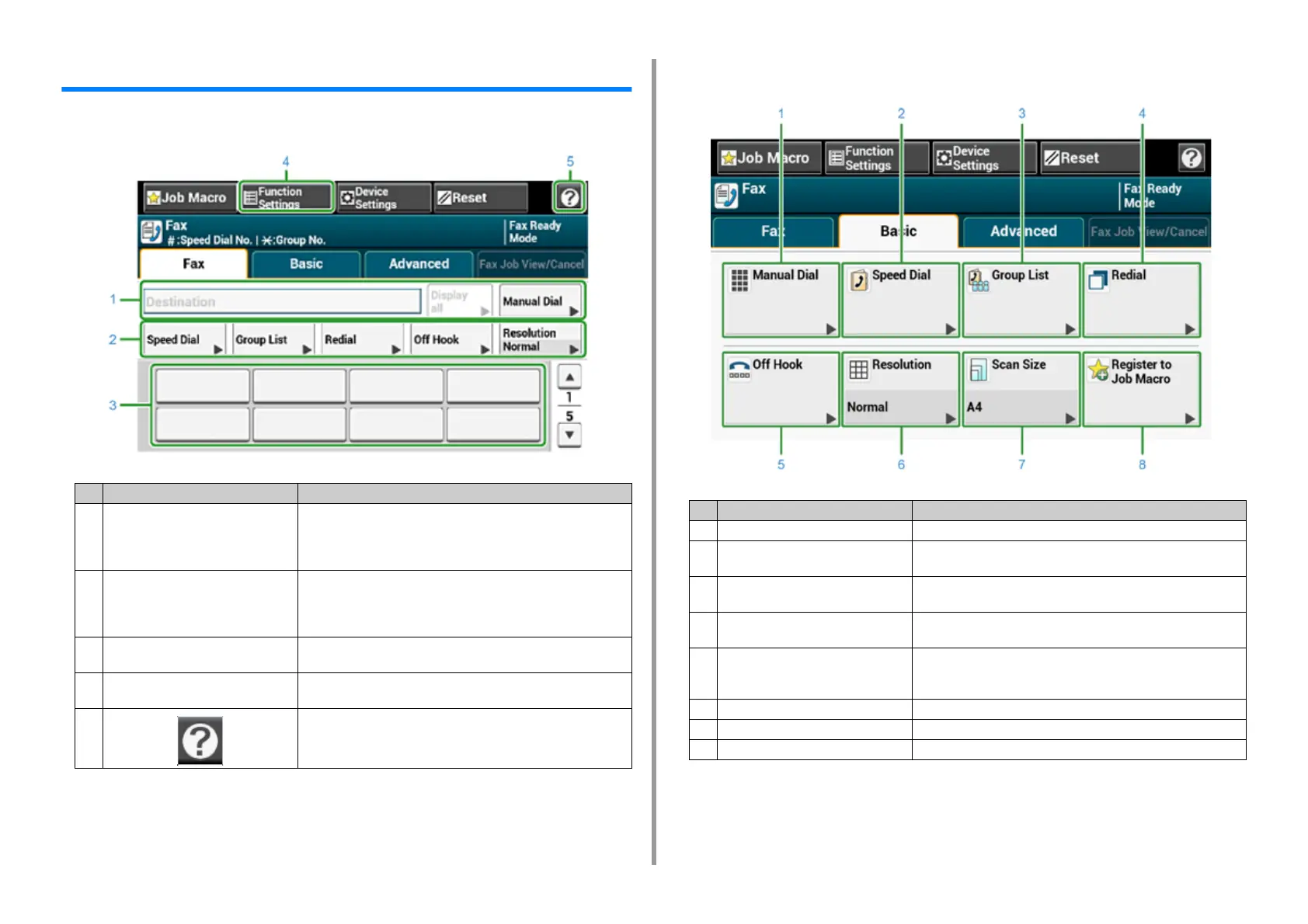 2 Shortcut buttons Displays shortcut buttons for using fax functions.