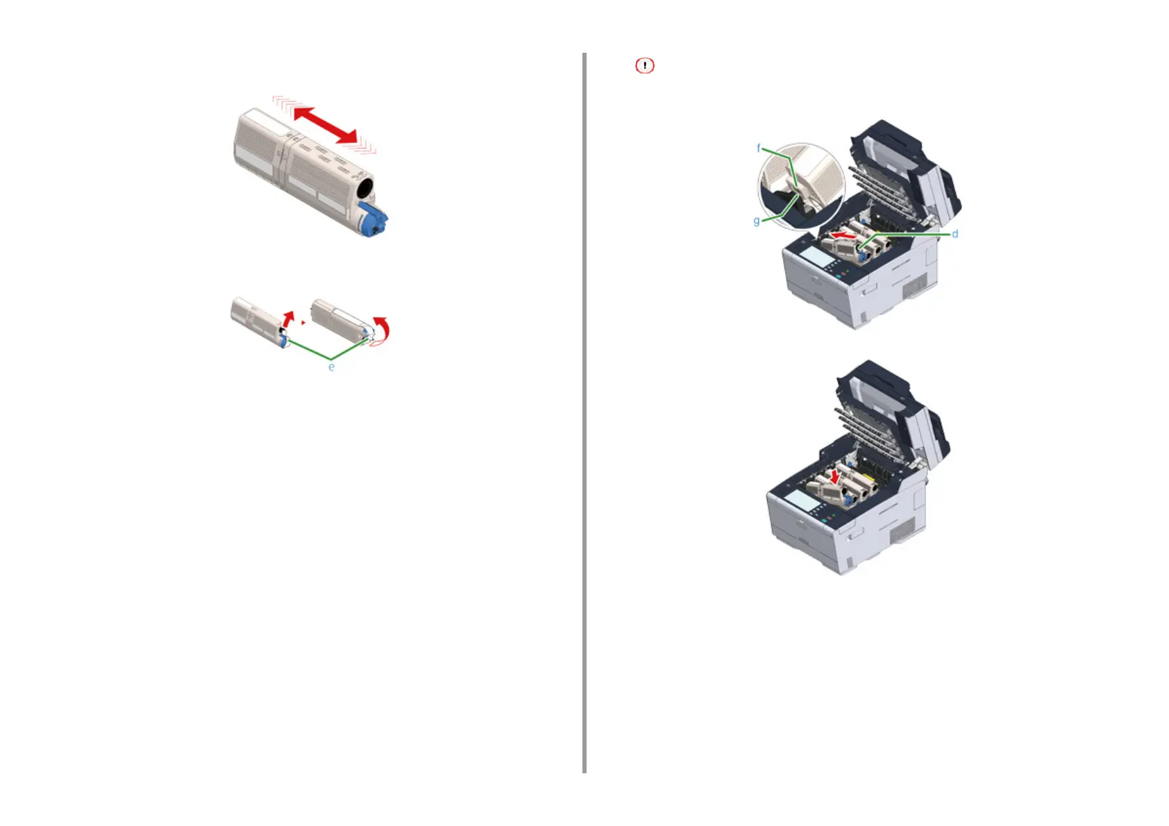 Remove the tape (e) from the toner cartridge.