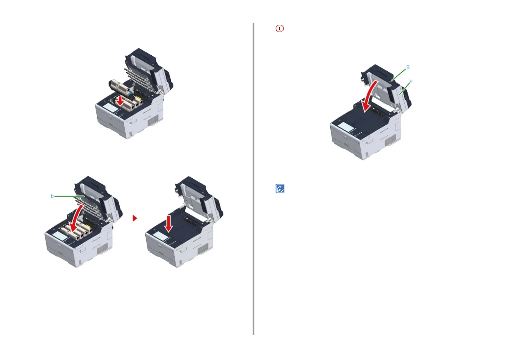Check the label color of the new image drum and place the drum into the