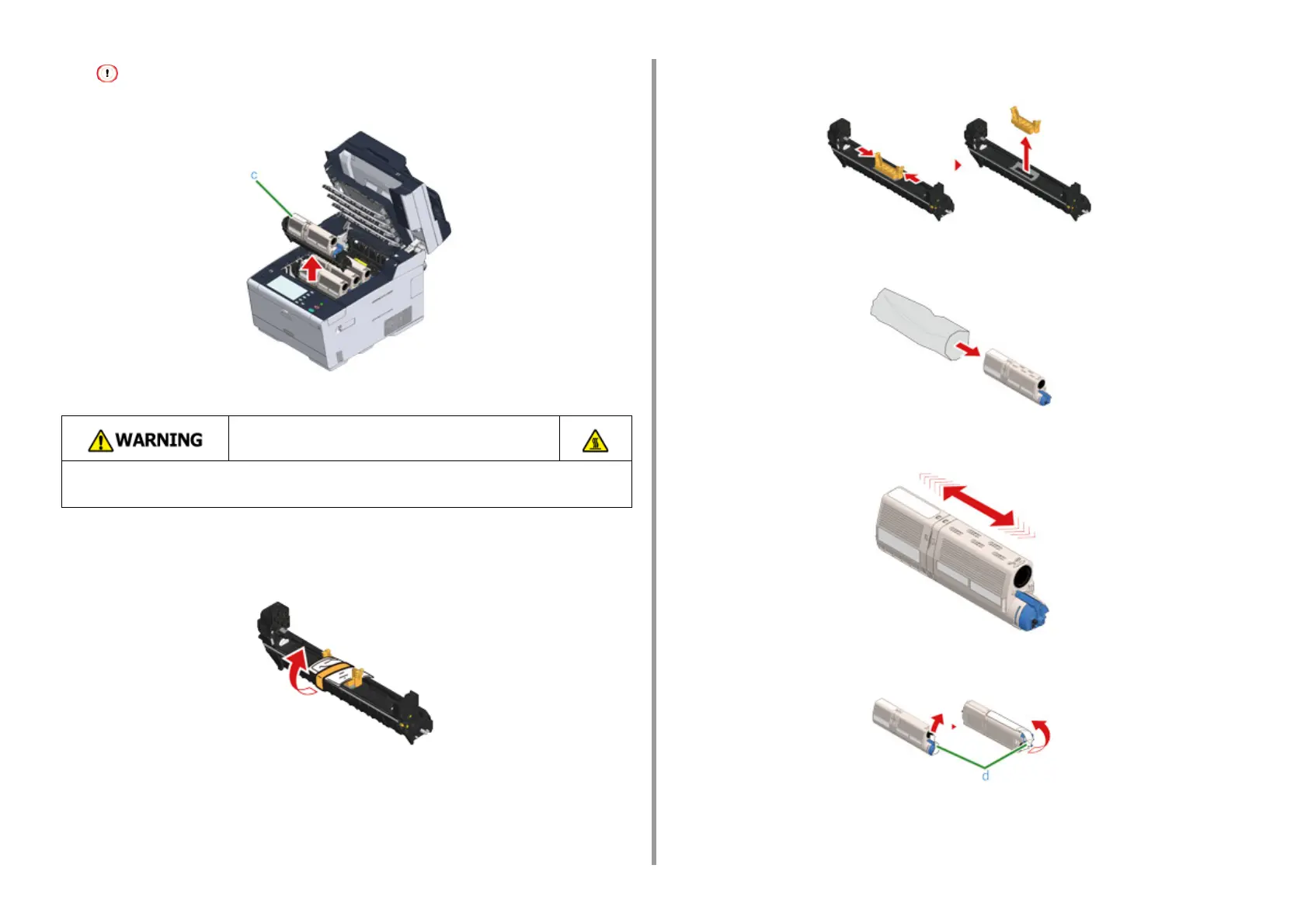 Remove the tape (d) from the toner cartridge.