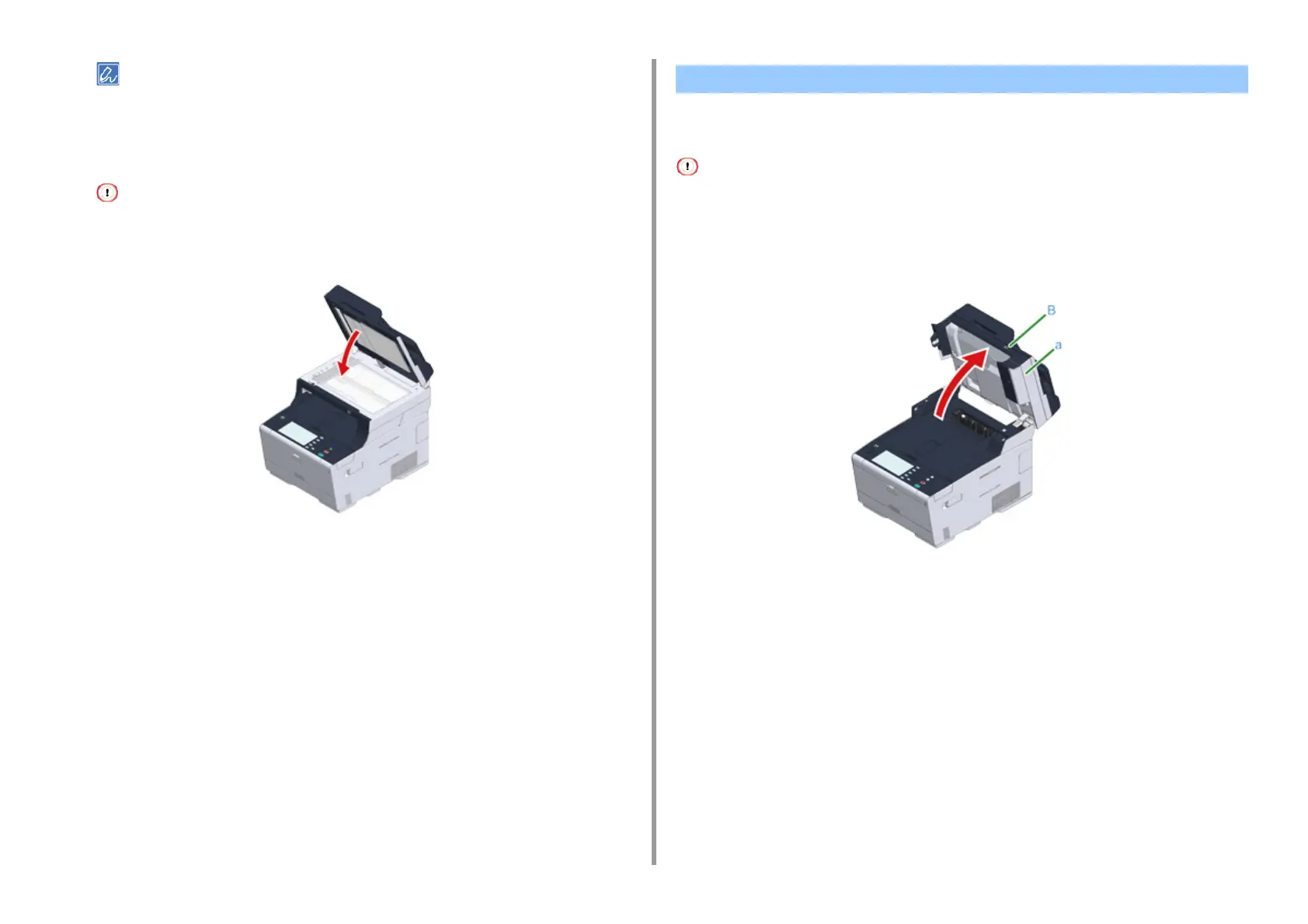Hold the handle (B) and open the scanner unit (a) completely.