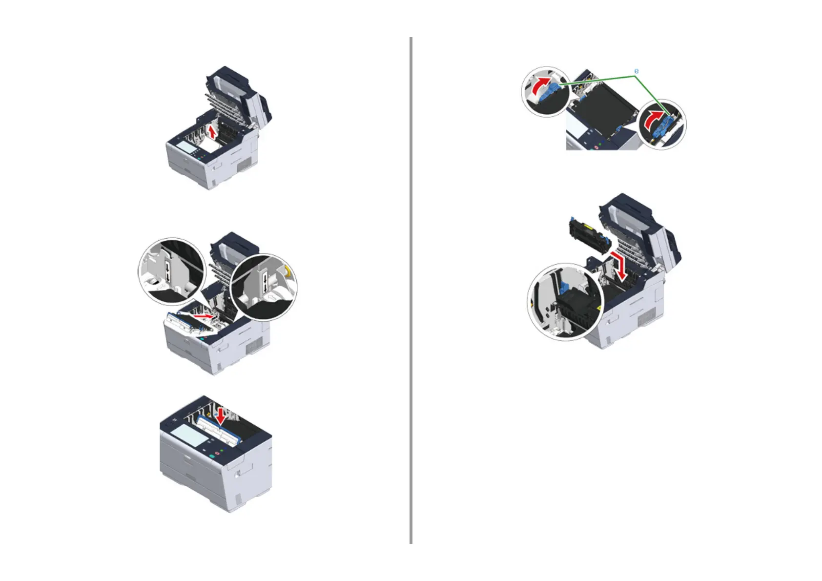 Hold the fuser unit handle and place the fuser unit into the machine.