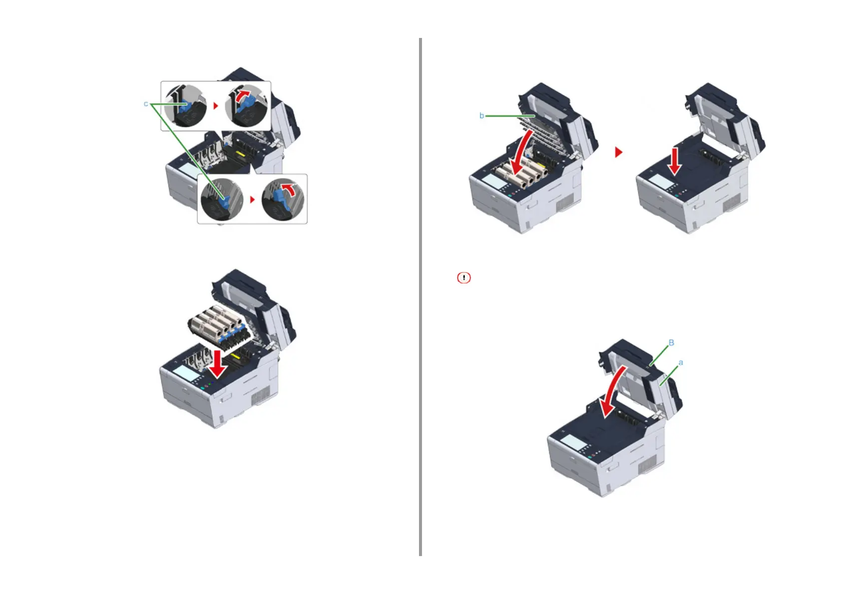 Replace the four image drums into the machine