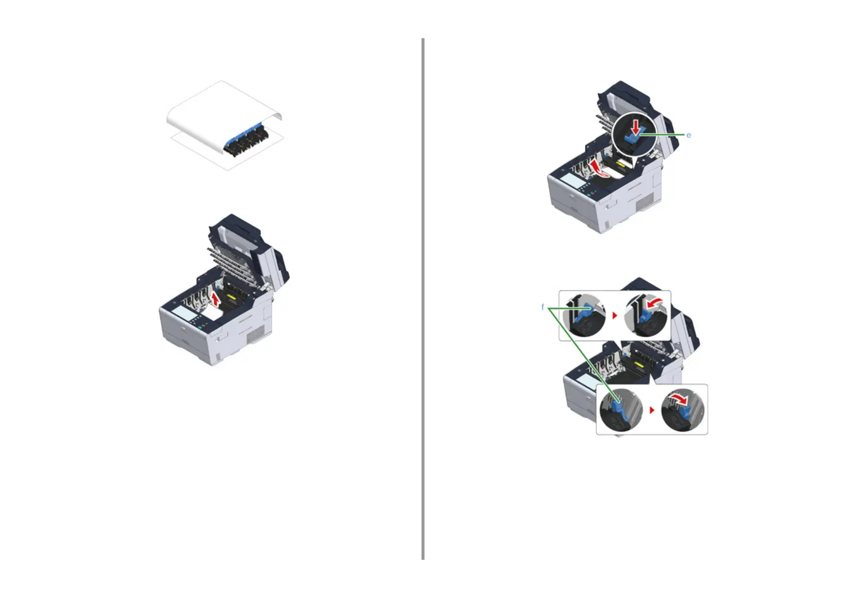 Tilt the lock levers (f) on the both sides of the fuser unit toward you.