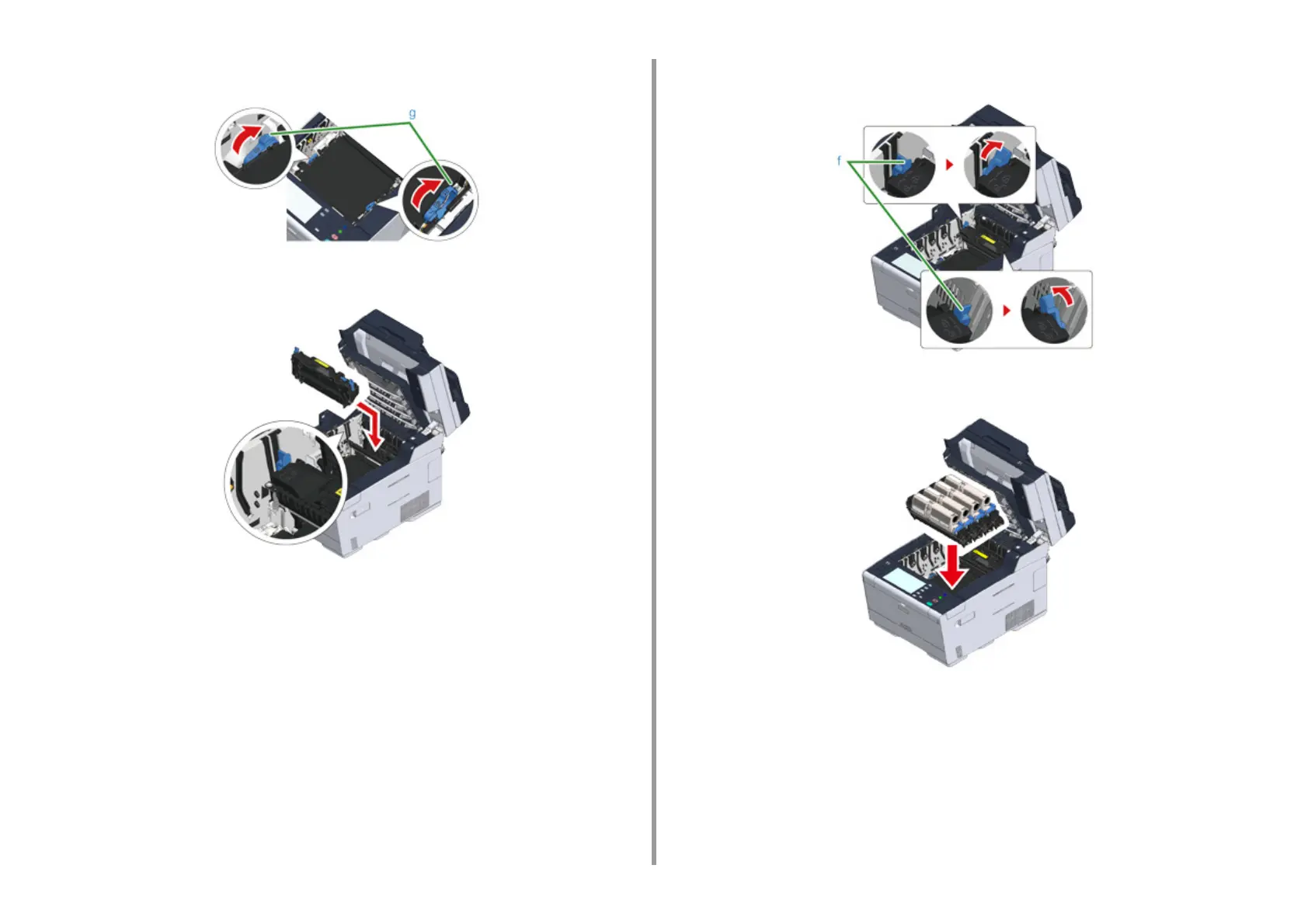Tilt the lock levers (f) on the both sides of the fuser unit.