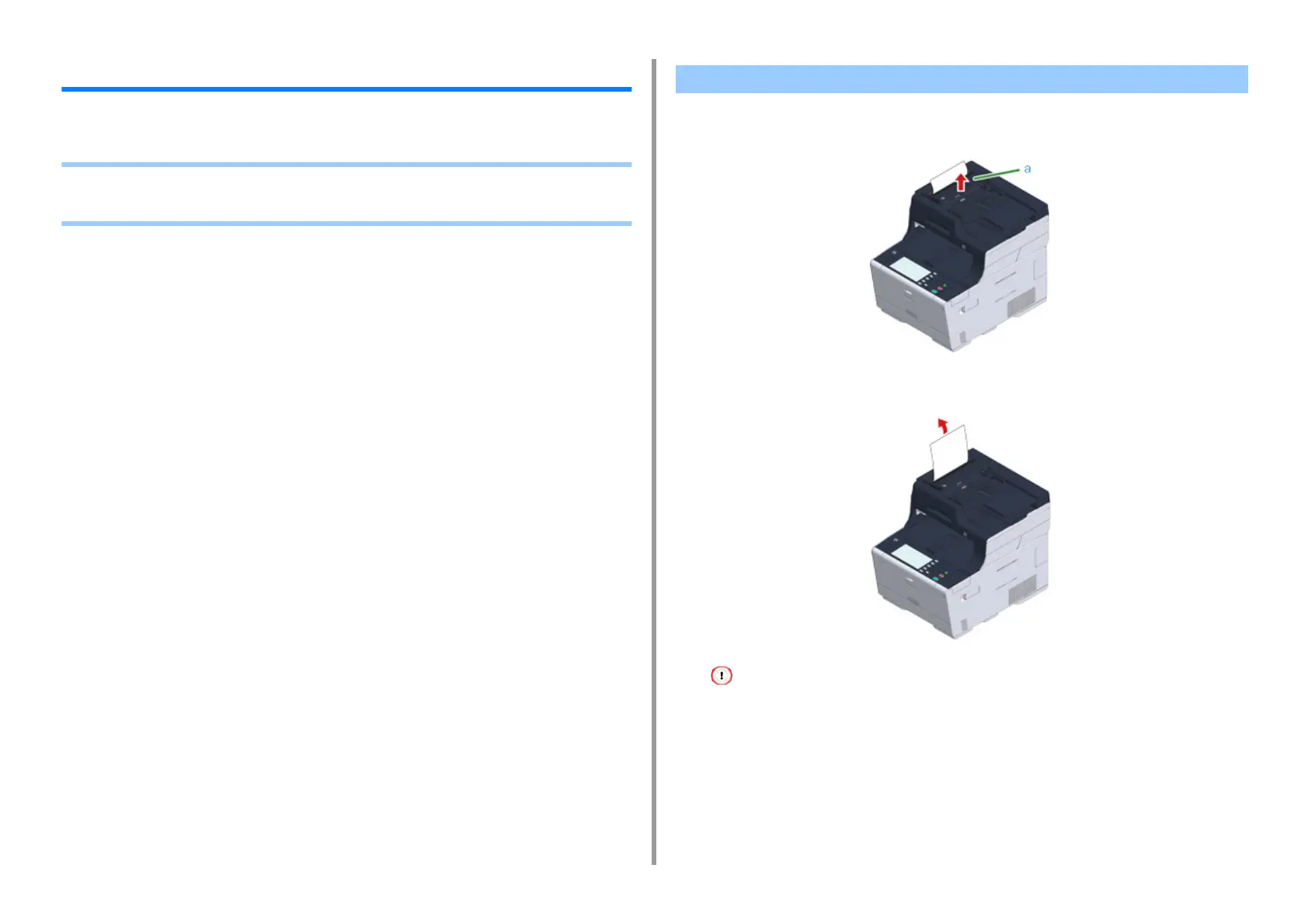 This section describes how to handle when a document jam occurs.