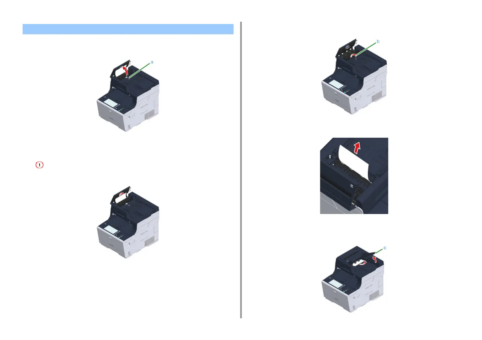 If the edge of document jammed under the document tray (c) can be seen, lift